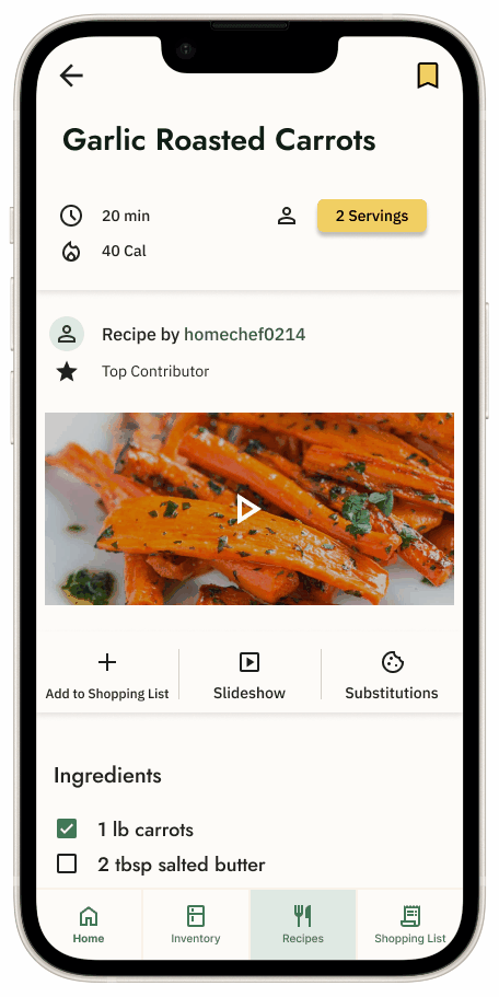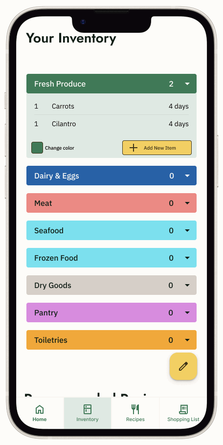 How can we improve kitchen efficiency? This question rose from several pain points that occur when shopping for groceries and planning meals. Friddge aims to provide users with a comprehensive way to view and organize their kitchen pantry and fridge to help them remember and plan ahead for their trips to the grocery stores. It also aims to provide users with recipes and tailored recommendations to utilize ingredients at home to reduce waste.